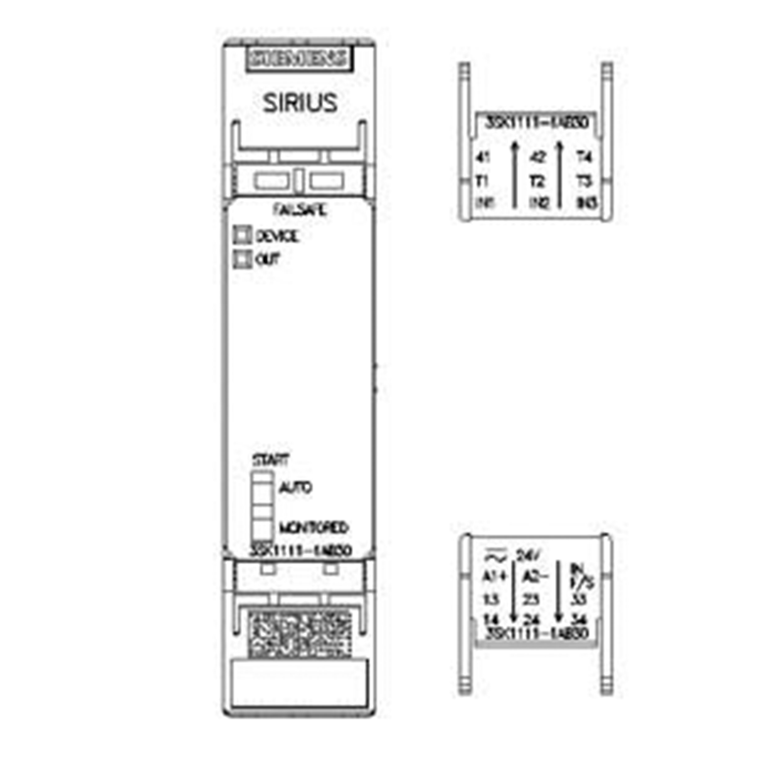 SIRIUS safety relay Basic unit Standard series Relay enabling circuits 3 NO contacts plus Relay signaling circuit 1 NC contact Us = 24 V AC/DC screw terminal