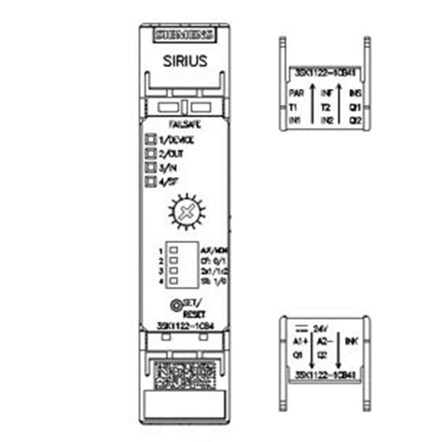 SIRIUS safety relay basic unit 3SK2 series 10 F-DI, 2 F-DQ, 1 DQ, 24 V DC Can be parameterized via SIRIUS Safety ES 22.5 mm overall width screw terminal up to SIL 3 (IEC 62061) up to performance level e (ISO 13849-1) output expansions 3SK1, coupling relay 3RQ1 and fail-safe motor starters 3RM1 via device connector connectable