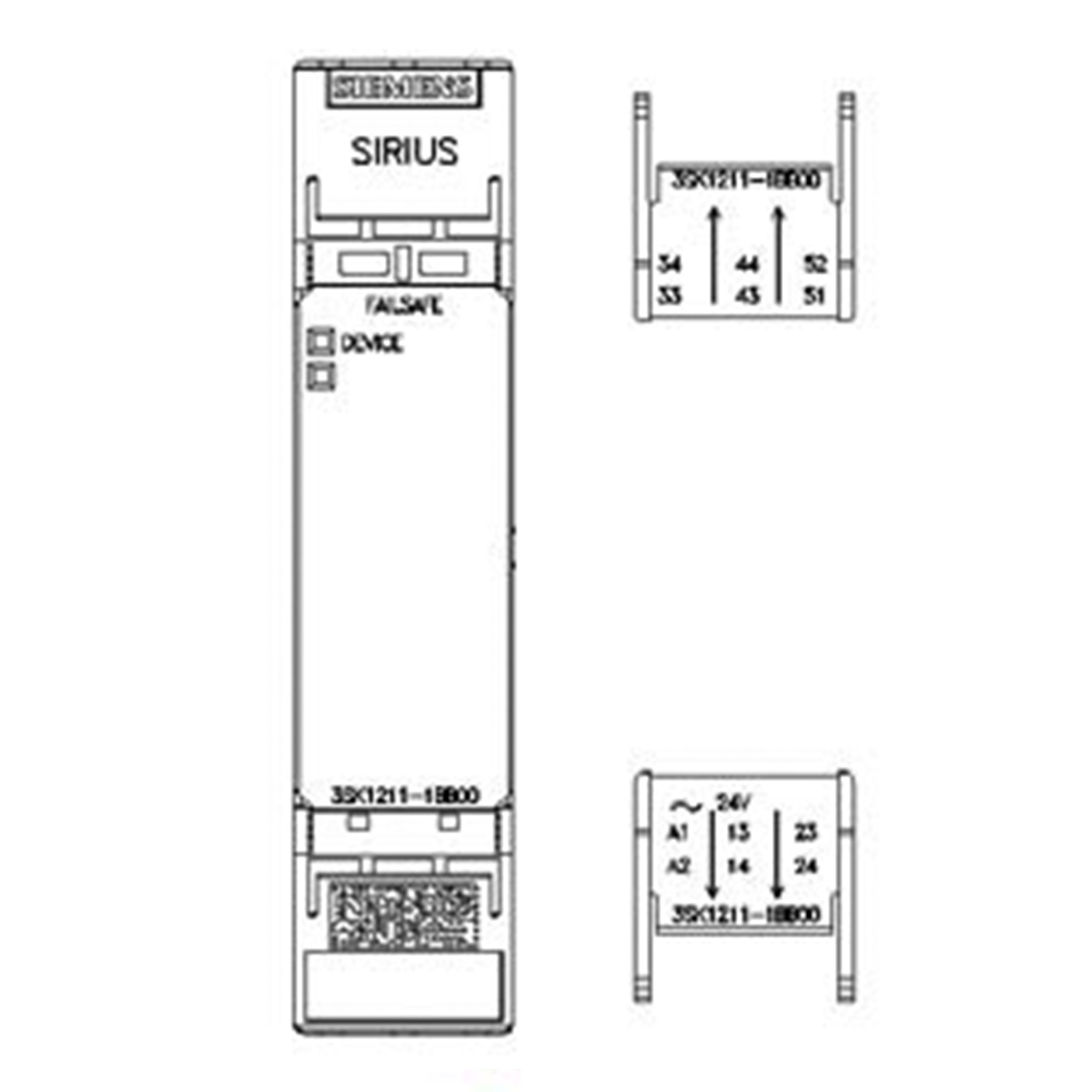 SIRIUS safety relay Output expansion 4RO with relay enabling circuits 4 NO contacts plus Relay signaling circuit 1 NC contact Us = 24 V AC screw terminal