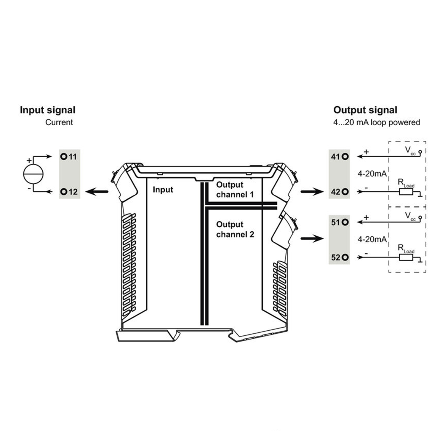 | Version | Passive isolator, Input : 4-20 mA, Output : 2 x 4-20 mA, (loop powered), Signal distributor, Output current loop powered |