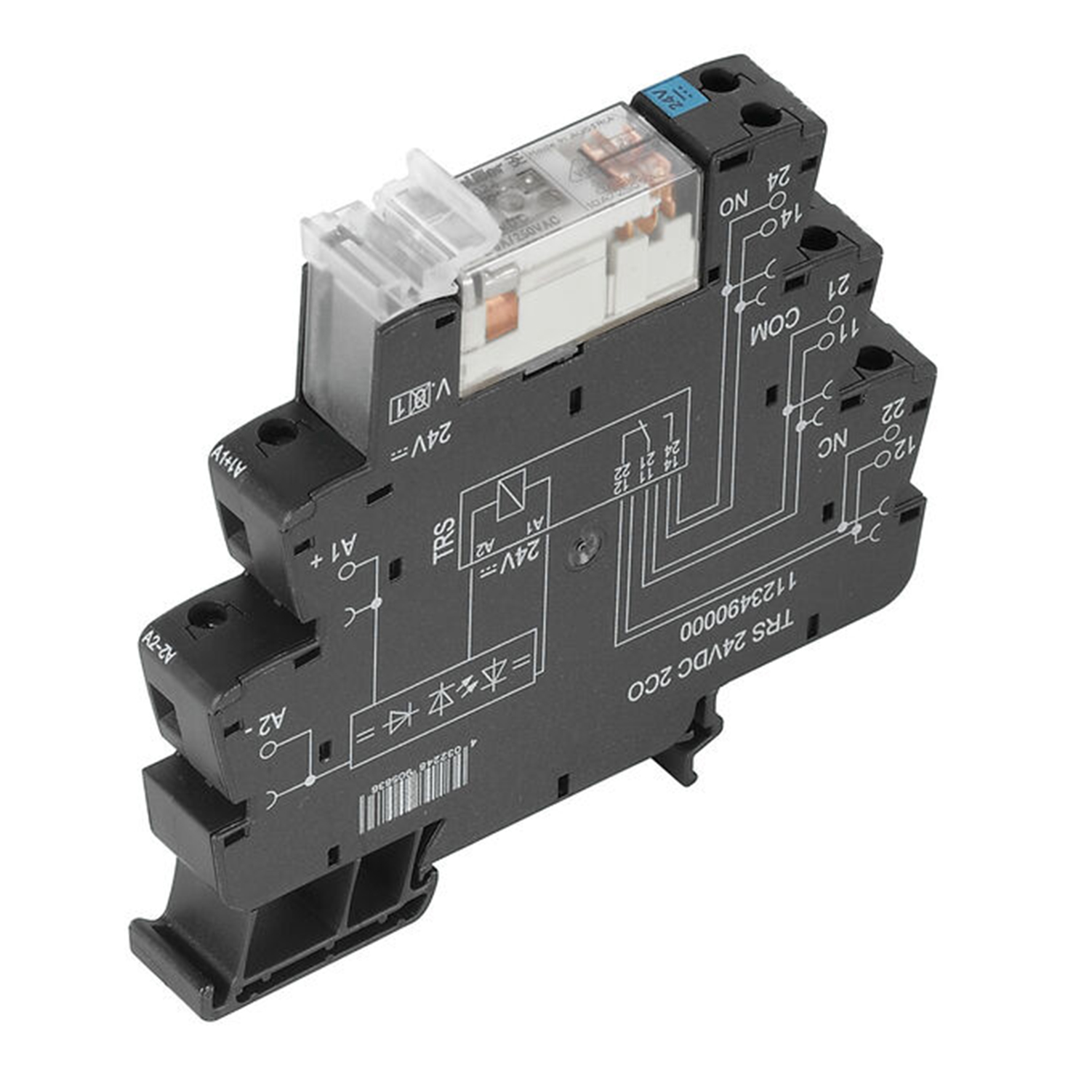 | Version | TERMSERIES, Relay module, Number of contacts: 2, CO contact AgNi, Rated control voltage: 24 V DC ±20 %, Continuous current: 8 A, Screw connection, Test button available: No |